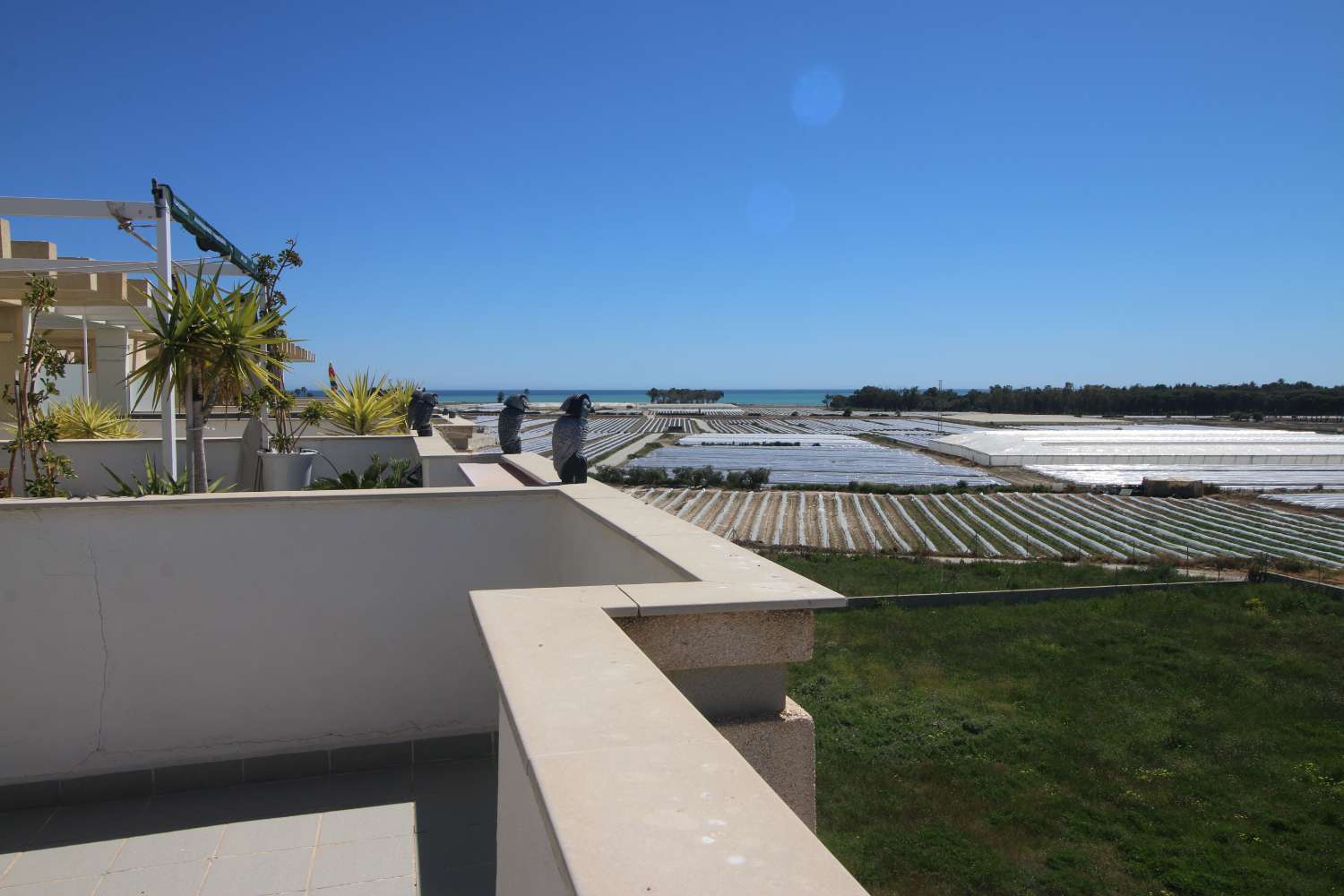 La casta tiene una escalera exterior que da acceso a un estupendo solárium de 65 m2 con vistas hacía el mar y el pueblo de Palomares.