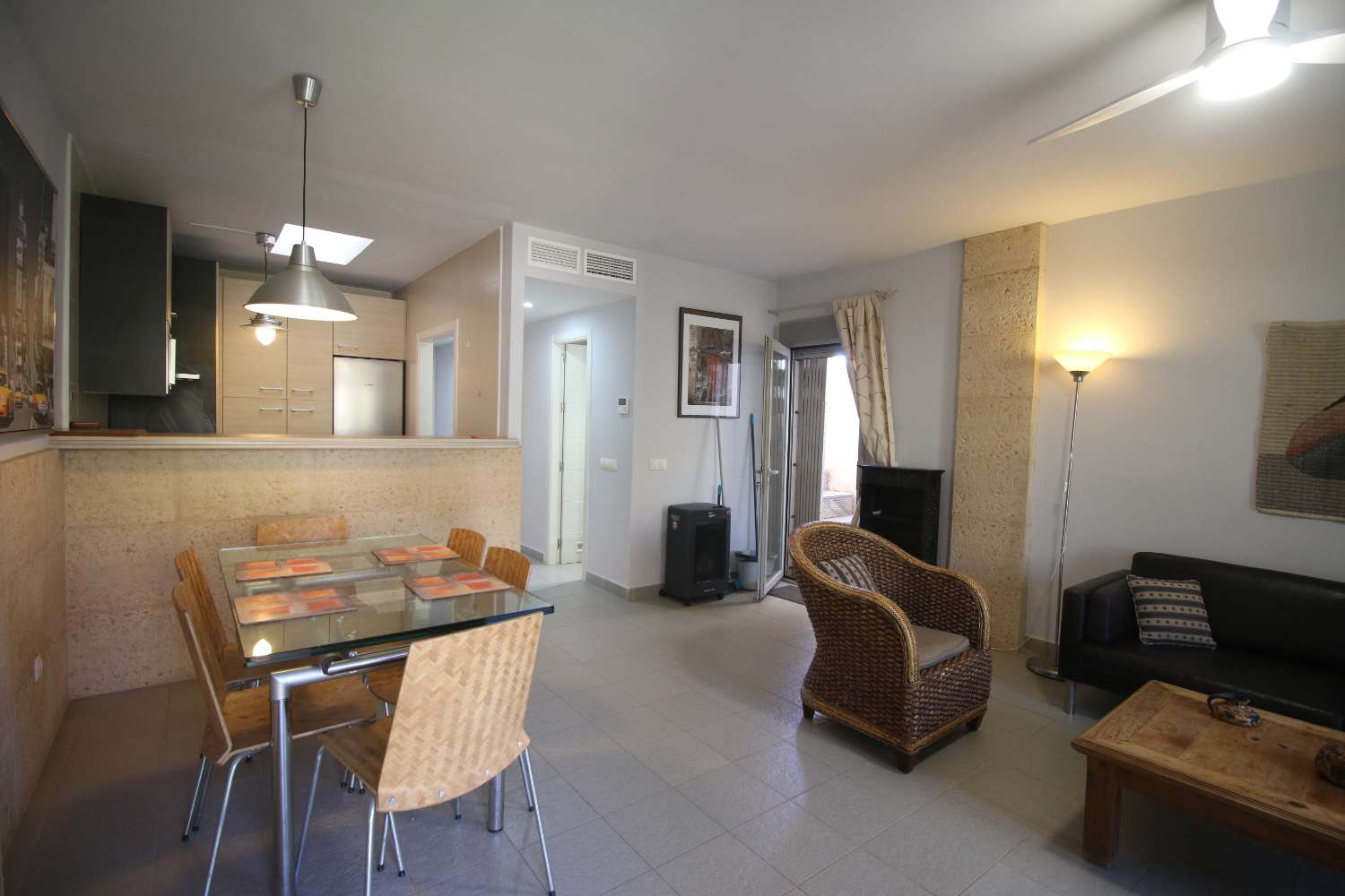 Se compone por salón comedor amplio, acceso a terraza en planta con vistas al interior de la urbanización, cocina totalmente completa con claraboya, 1 baño completo, 1 baño con ducha, dormitorio principal con armario empotrado y balconera, dormitorio secundario con armario empotrado.